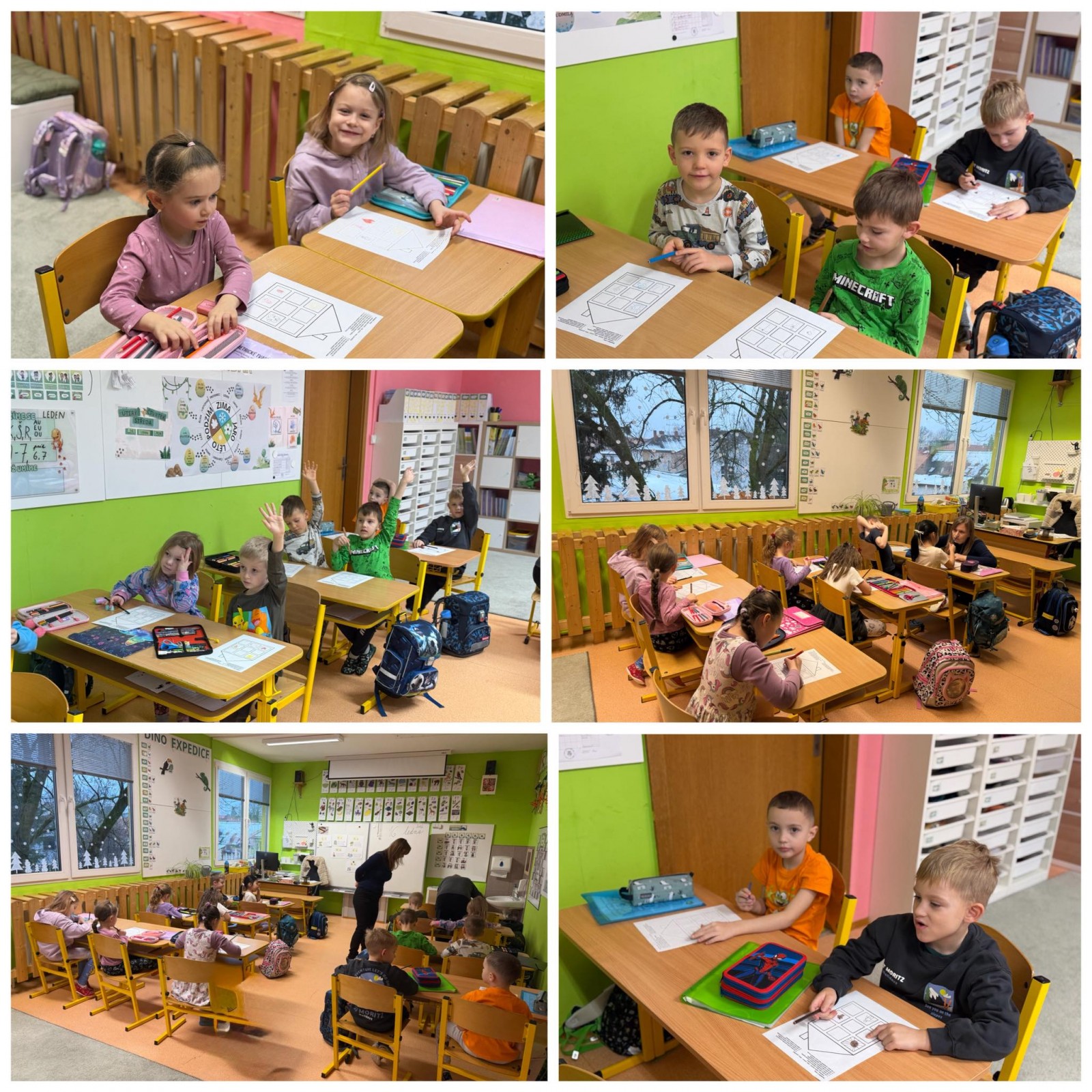 Paní učitelka děti postupně seznamuje se školním prostředím as tím, co je v první třídě čeká. Předškoláci pravidelně navštěvují první třídu, kde poznají atmosféru školy a nenásilnou formou si procvičují dovednosti, které budou brzy potřebovat.